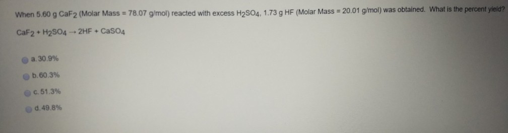 How many grams of CaF2 (molar mass = 78.077) will from www.chegg.com